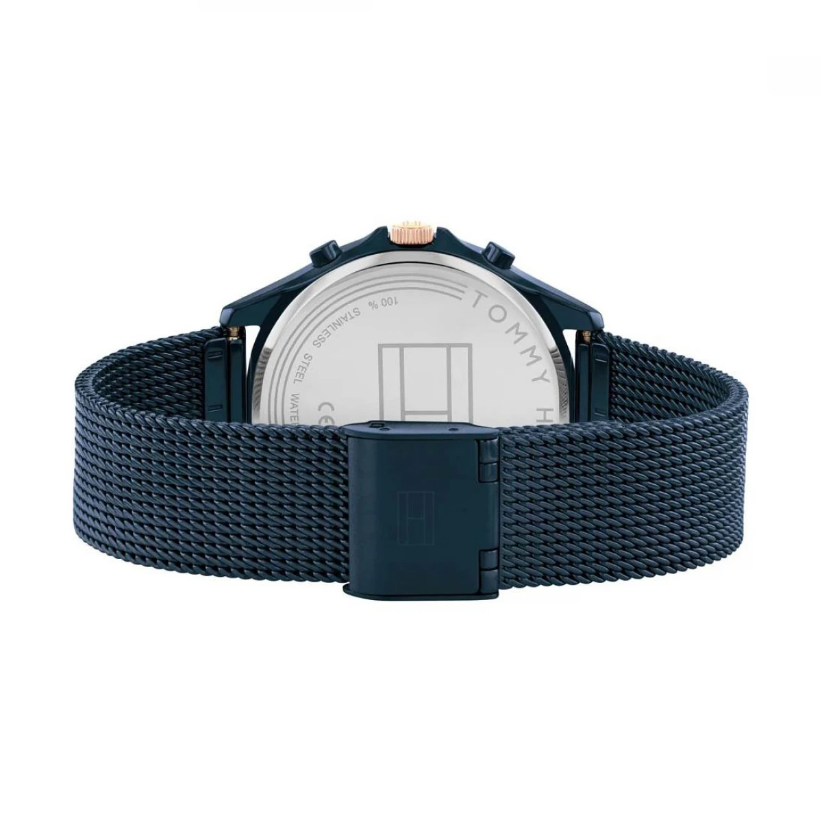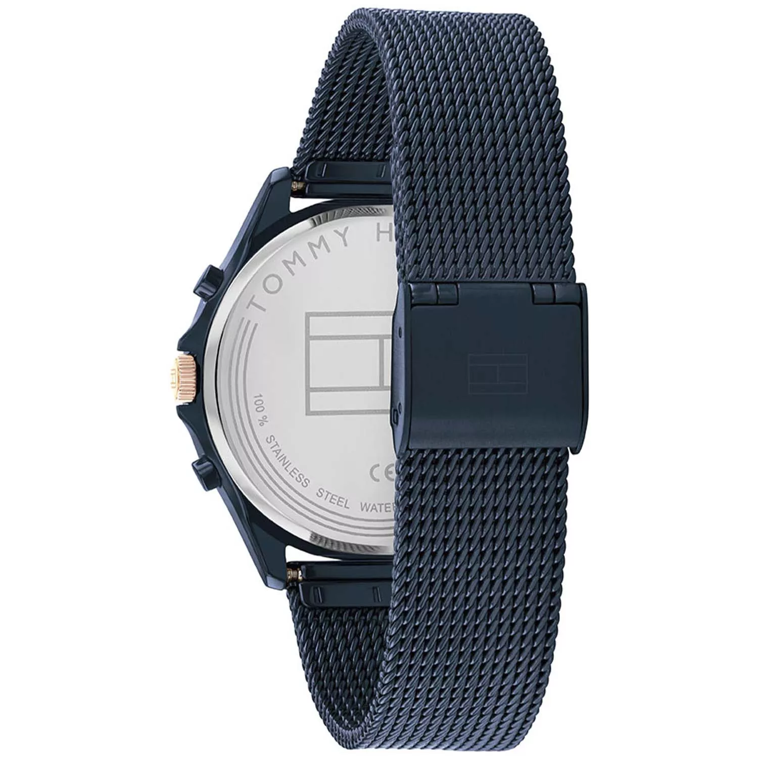 تألقي بفخامة استثنائية مع ساعة تومي هيلفيغر للنساء التي تجسد معنى الرفاهية المعاصرة. تصميم أنيق بعلبة معدنية مصقولة بلون أزرق داكن ينساب حول المعصم بسوار شبكي فاخر يمنح إحساساً ناعماً وثابتاً في آنٍ واحد. الميناء الأزرق العميق يلمع بلمسة دوارة ساحرة، تتداخل فوقه مؤشرات وعقارب بطلاء ذهبي وردي تضيف تبايناً جذاباً ورقياً لافتاً. التفاصيل الجانبية مصقولة بعناية لتبرز الخطوط الانسيابية وتمنح الساعة حضوراً مهيباً يلائم سيدات الذوق الرفيع.