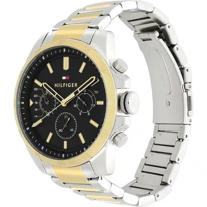 - تصميم عصري وفاخر: ساعة تومي هيلفيغر ديكر تتميز بتصميم دائري أنيق يجمع بين الفخامة والعصرية.