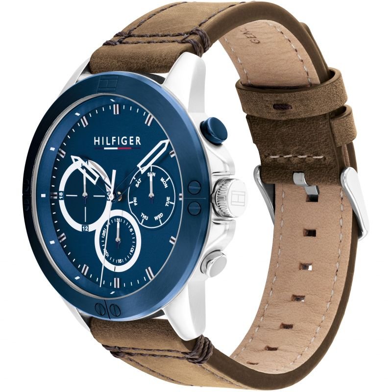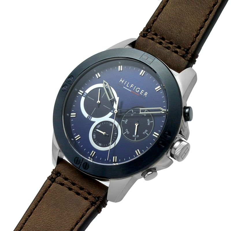 ساعة تومي هيلفيغر رجالي أصلية موديل (هاري) Harley 1791895 بلون ازرق و استيك جلد بلون بني