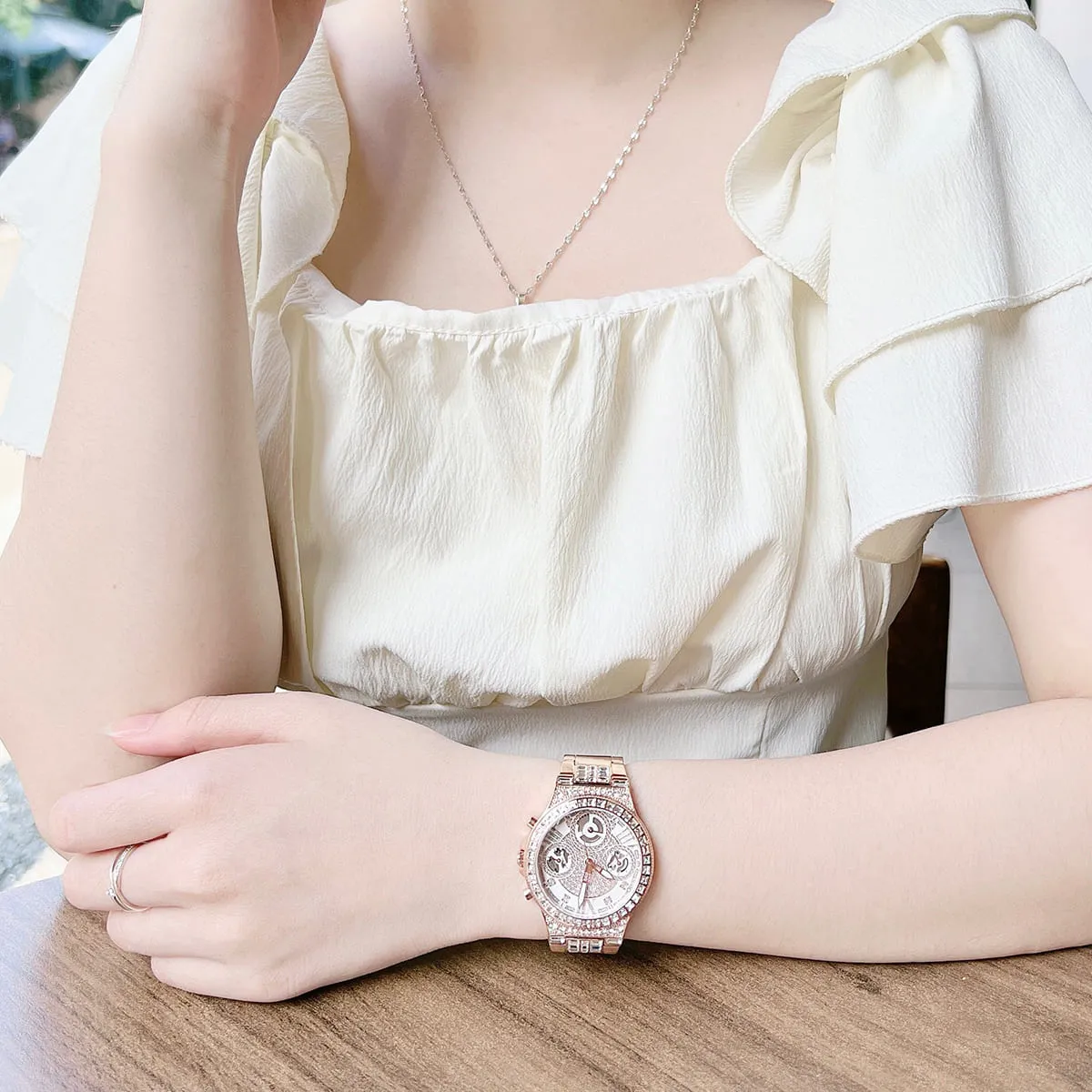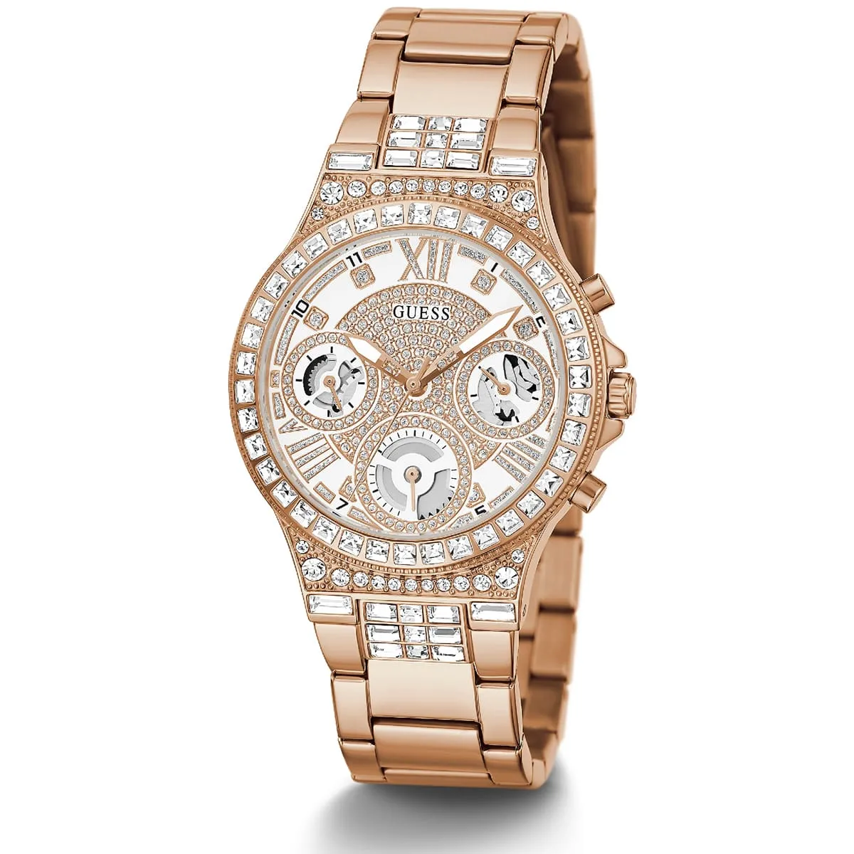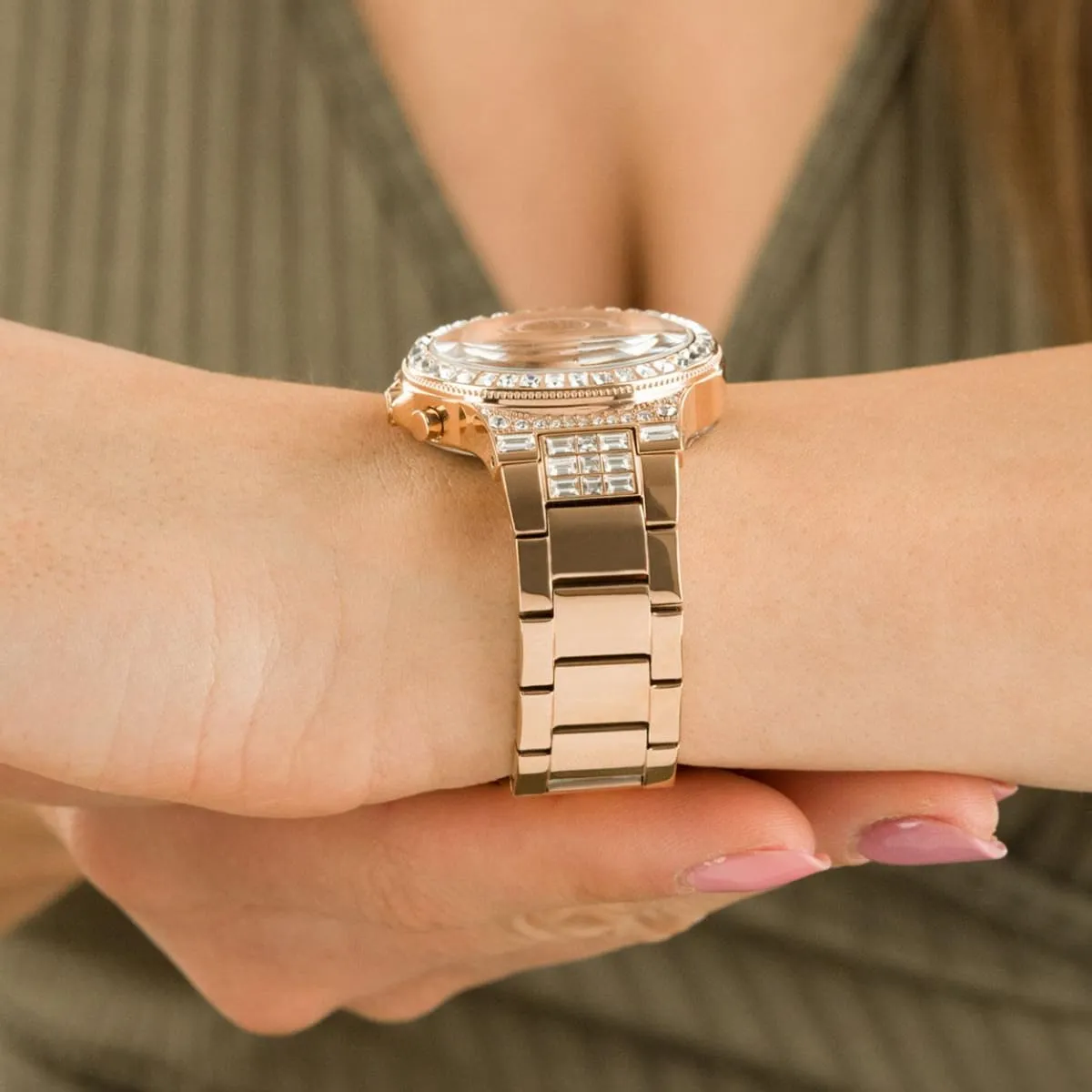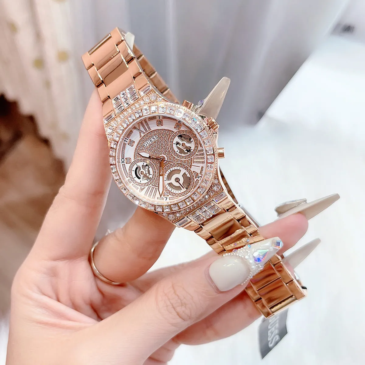 الساعة مزينة بفصوص كريستال