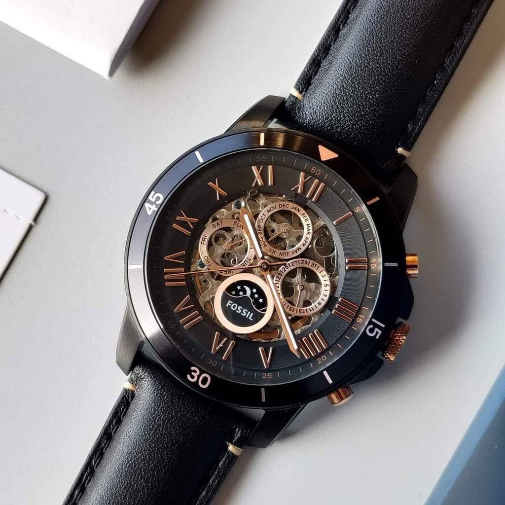 ساعة فوسيل للرجال اصلية موديل (جرانت سبورت) Grant Sport ME3140 بلون اسود واستيك جلد بلون اسود