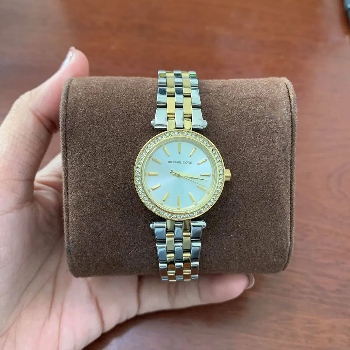 ساعة مايكل كورس Michael Kors للنساء أصلية موديل Darci Petite MK3323 لون فضي و استيك معدن ستانلس لون فضي * ذهبي.