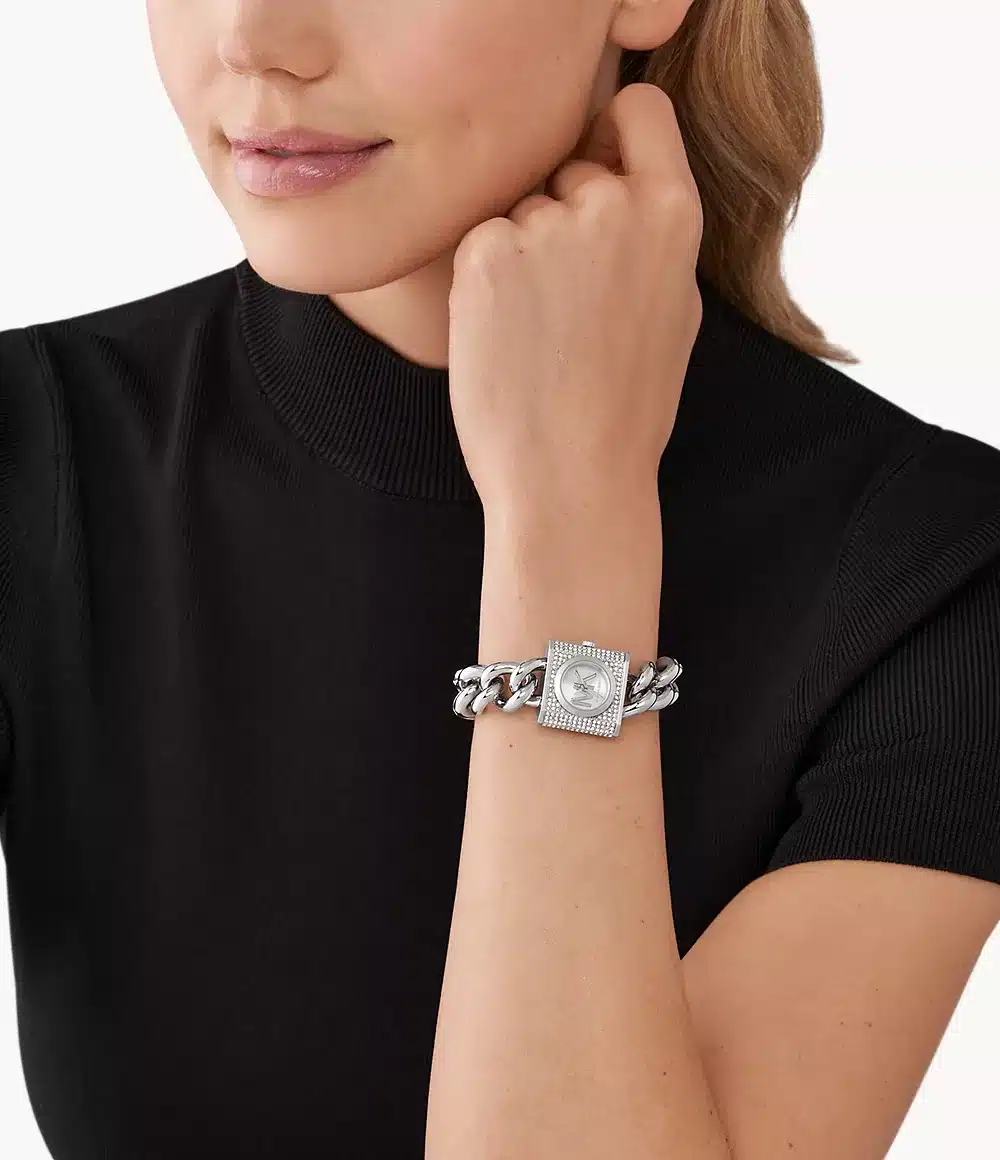 ساعة مايكل كورس حريمي أصلية موديل MK4718 بلون فضي و استيك معدن بلون فضي