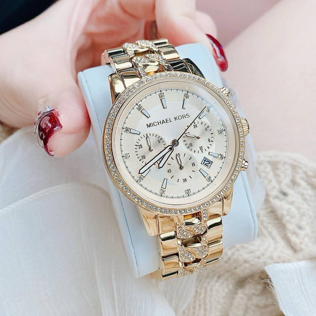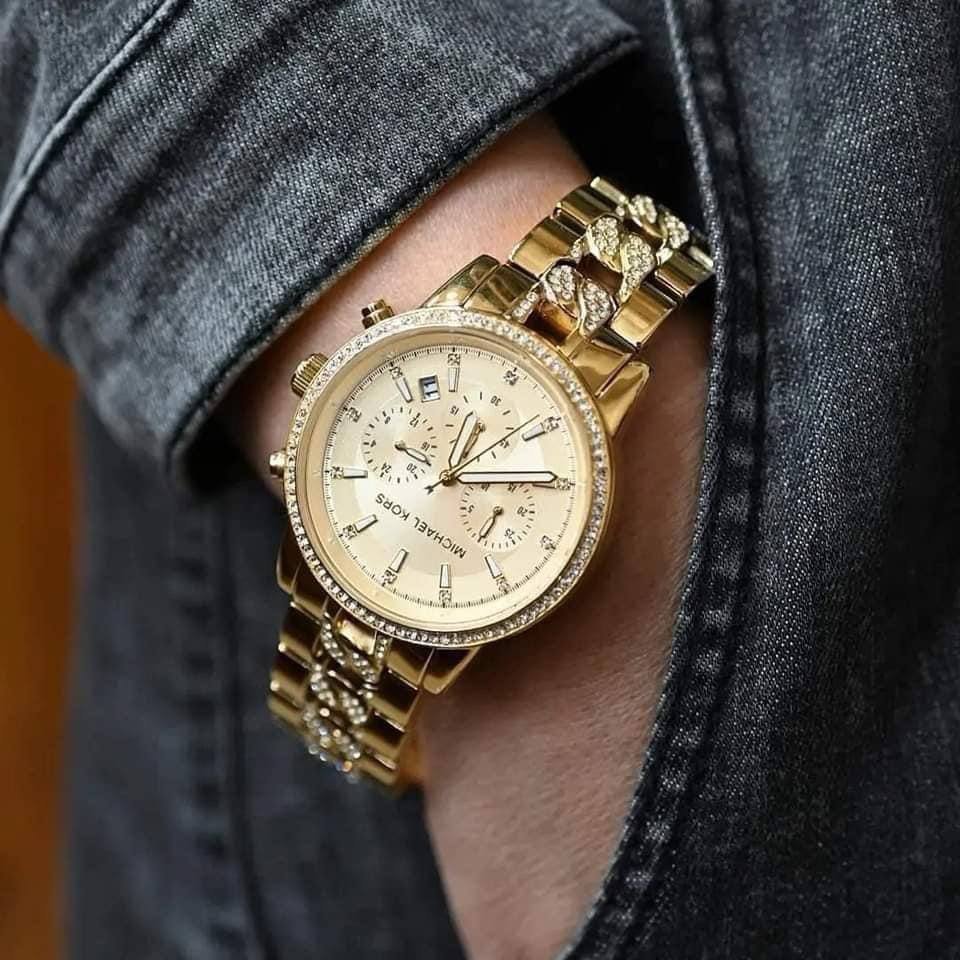 ساعة مايكل كورس للنساء اصلية موديل (ريتز) Ritz MK6937 بلون ذهبي واستيك معدن بلون ذهبي